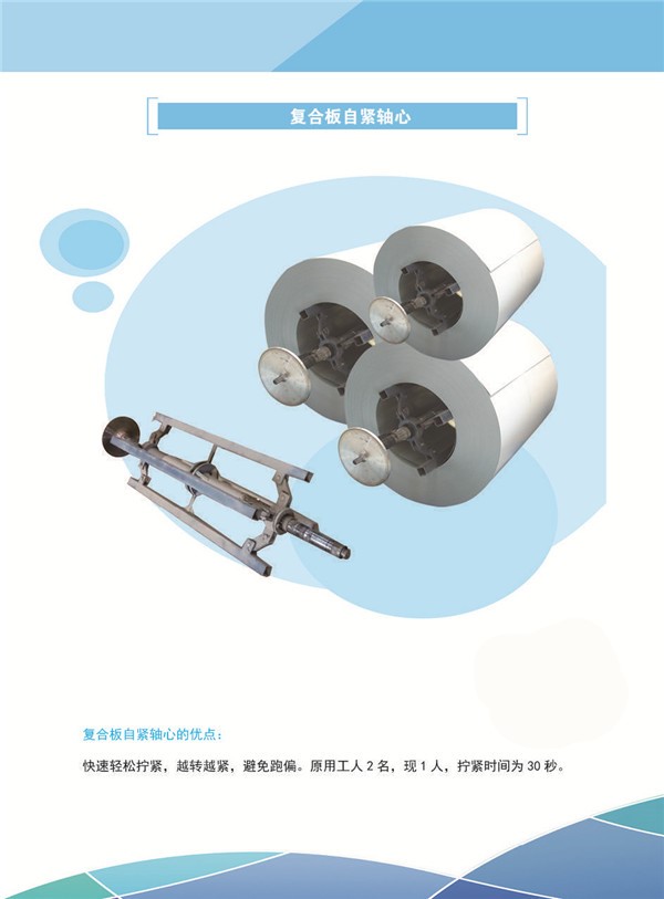 遼寧鑫碩智能機(jī)械自主研發(fā)的專(zhuān)利設(shè)備-復(fù)合板自緊軸芯,30秒快速輕松擰緊,越轉(zhuǎn)越緊避免跑偏,相比較普通的軸芯,可以節(jié)省人工1-2人,現(xiàn)只用1人,從而節(jié)省了人工成本,真正實(shí)現(xiàn)了省時(shí)省力省人工。