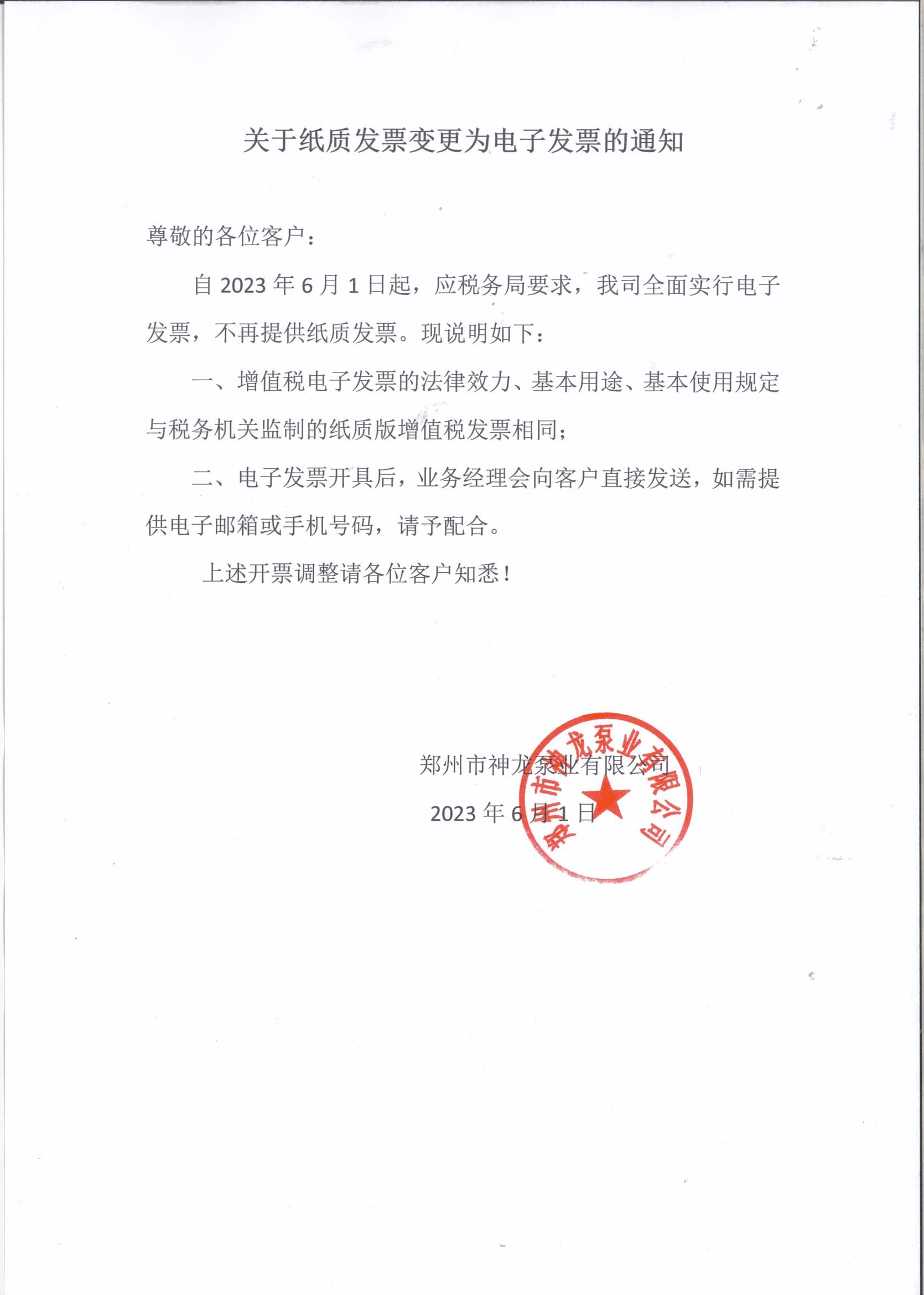 關(guān)于紙質(zhì)發(fā)票變更為電子發(fā)票的通知
